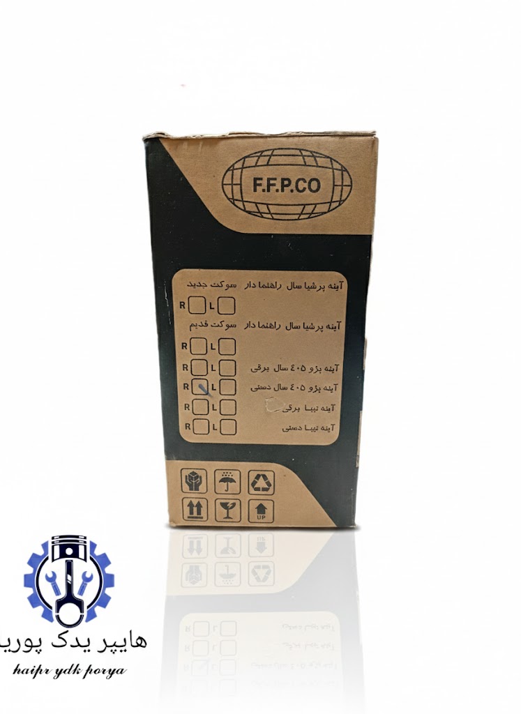 ساخت کشور ایران مورد تایید و استفاده در خط تولید ایران خودرو کیفیت درجه۱ مقاوم در برابر ضربه و شکستگی دارای علامت استاندارد شیشه رفلکس طول عمر بسیار بالا تاشو به همراه پیچ: مناسب خودروهای پژو ۴۰۵ راست